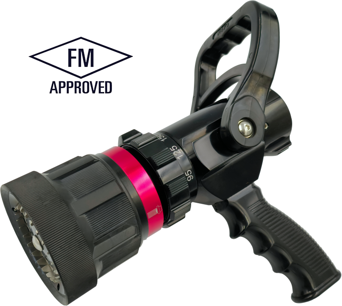 * Stainless steel spinning teeth produce wide protective fog for firefighters